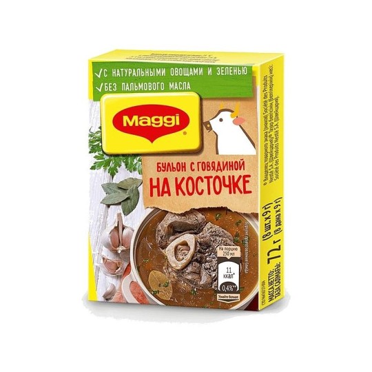 В каждом бульонном кубике MAGGI идеально сбалансированы мясной и овощной вкусы, соль и тщательно подобранный букет пряностей и специй. Благодаря ему ваши любимые блюда приобретают вкус домашнего томленого мясного бульона на косточке, а также аппетитный внешний вид.