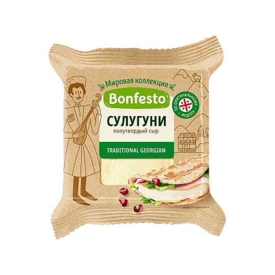 СЫР BONFESTO ПОЛУТВЕРДЫЙ СУЛУГУНИ 40% 180 ГР — Price from ₸ | Instashop