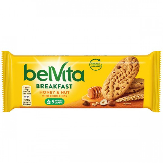 BELVITA| утреннее печенье витаминизированное "С МЕДОМ, ОРЕХАМИ, ШОКОЛАДНЫМИ КУСОЧКАМИ" 50г