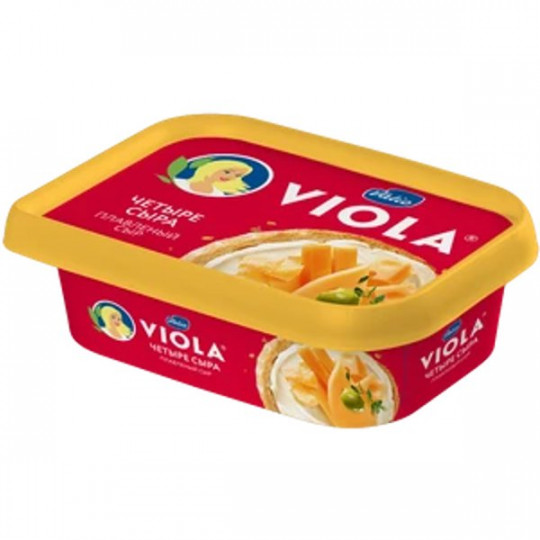 Знакомый вот уже трем поколениям россиян плавленый сыр Viola — это неизменная блондинка на упаковке и превосходный вкус внутри. Рецептура плавленого сыра, разработанная финскими и российскими технологами Valio, является поистине уникальной. Все ингредиенты в составе этого сыра являются натуральными и соответствуют российским, европейским и корпоративным стандартам качества Valio. В составе Viola "Четыре сыра" – комбинация твердых и полутвердых сортов сыра (чеддер, гауда, маасдам, пармезан), а также натуральное сливочное масло. Именно поэтому плавленый сыр получается таким нежным, насыщенным и вкусным.
