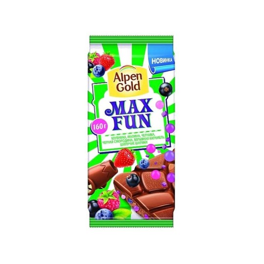 ALPEN GOLD| молочный шоколад ягодный микс, взрывная карамель, шипучие шарики "MAX FUN" купить по цене от 1 499 ₸₸ с бесплатной доставкой | Instashop