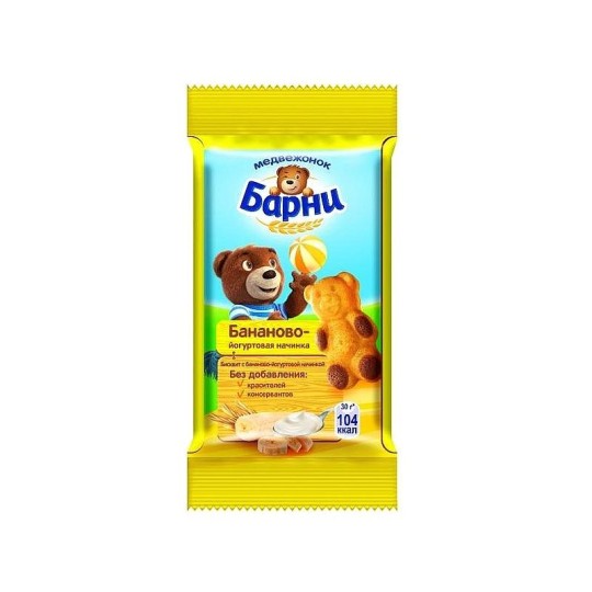 БАРНИ| пирожное бисквитное "С БАНАНОВО-ЙОГУРТОВОЙ НАЧИНКОЙ" 30г купить по цене от 295 ₸₸ с бесплатной доставкой | Instashop