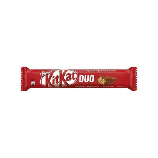 KitKat - это оригинальное сочетание молочного шоколада и хрустящей вафли. Шоколадный батончик KitKat DUO - отличный вариант для любого перерыва. KitKat - популярный бренд и один из лидеров на российском рынке батончиков. Есть перерыв, есть KitKat ! Без искуственных красителей, ароматизаторов и консервантов.