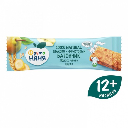 БАТОНЧИК ЗЛАКОВО-ФРУКТОВЫЙ ФРУТОНЯНЯ ЯБЛОКО БАНАН ГРУША 25ГР купить по цене от 349 ₸₸ с бесплатной доставкой | Instashop