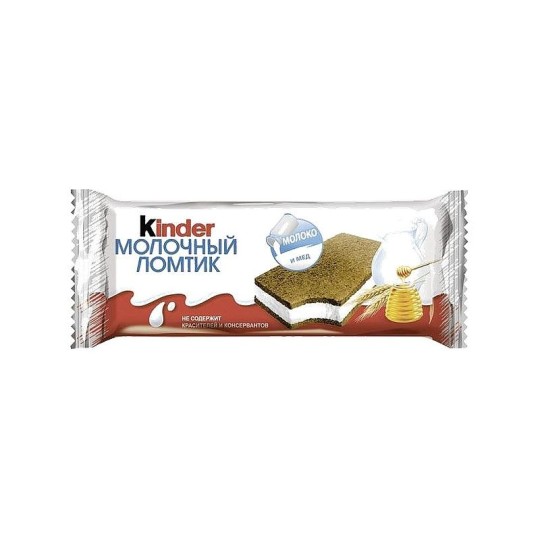 Бисквит KINDER молочный ломтик, 28г подарит вам и вашему ребенку нежный сливочный вкус и мягкость шоколадного бисквита. Он изготовлен из натуральных продуктов с добавлением меда и злаков с высоким процентным содержанием молока. Немецкие высокие технологии и качество делают этот бисквит одним из лидеров на рынке кондитерских изделий. Kinder молочный ломтик – лучший выбор родителей, которые заботятся о здоровом питании своих детей. Мед повысит иммунитет и общий тонус организма, а злаки помогут укрепить кости малыша. Бисквит KINDER молочный ломтик, 28г прекрасно подойдет для небольшого перекуса на школьной перемене. Дайте его ребенку с собой и будьте уверены, что он не останется голодным. СОСТАВ: Пастеризованное молоко 40%, растительные жир и масло, сахар, пшеничная мука, сухое обезжиренное молоко, мёд 5%, молочный жир, яичный порошок, обезжиренный какао-порошок, очищенные отруби, разрыхлители: дигидропирофосфат натрия, гидрокарбонат натрия, карбонат аммония; эмульгаторы: моно- и диглицериды жирных кислот, натуральные (кюрасао, молоко, красный апельсин) и идентичный натуральному (ванилин) ароматизаторы, соль.