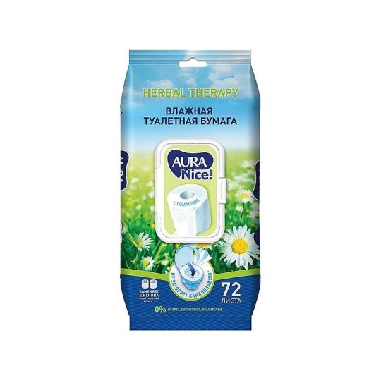 Бумага туалетная влажная Aura с ромашкой 72 шт