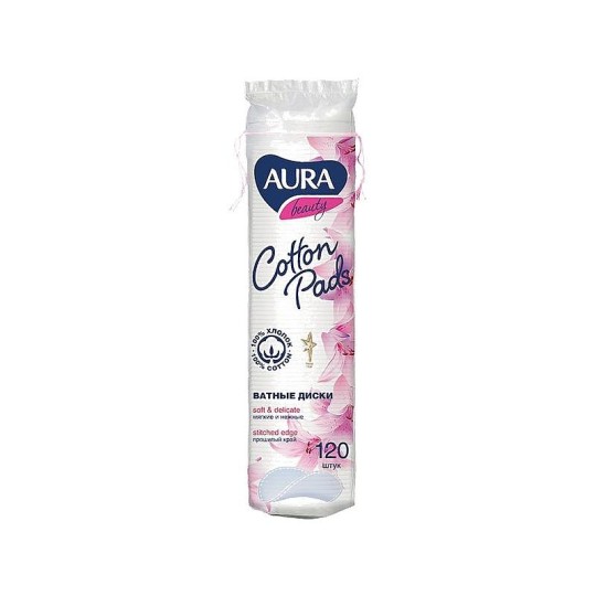 Мягкие и деликатные ватные диски AURA beauty производятся из 100% хлопка. - благодаря прошитому краю диски не расслаиваются и не оставляют ворсинок на коже; - прекрасно зарекомендовали себя во время снятия макияжа превосходно очищают кожу; - не вызывают аллергию а гладкая и нежная поверхность дисков идеально подходит для чувствительной кожи.%