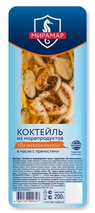 Коктейль из морепродуктов Мирамар По-Мексикански в масле с пряностями 200 гр. купить по цене от 1 319 ₸₸ с бесплатной доставкой | Instashop