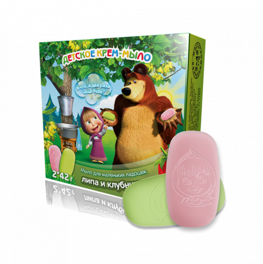 Крем-мыло детское "Маша и Медведь" с экстрактом клубники и липы, 42гр.*2 штуки