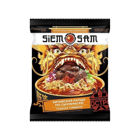 Купить ЛАПША Б/ПРИГ. SIEM SAM КИТАЙСКАЯ ПО-СЫЧУАНЬСКИ ТУШЕНАЯ ГОВЯДИНЫ 90 Г ПАК.