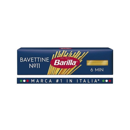 Макароны Barilla «Баветтине» № 11 – это тонкие плоские полоски аппетитного золотистого цвета. Традиционно их подают с генуэзским «Песто алла Дженовезе», однако они хорошо сочетаются и с другими соусами и морепродуктами – всё зависит от вашего вкуса и фантазии. Паста производится из пшеницы твёрдых сортов и не содержит в своём составе искусственных консервантов, ГМО и красителей – ничего, кроме высококачественной муки и чистой воды. Для идеальной текстуры аль денте Barilla Bavettine № 11 рекомендуется варить 7 минут. Они не развариваются и не слипаются, оставаясь готовыми снаружи, но с твердой сердцевиной внутри