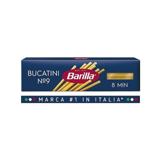 Макароны Barilla Bucatini № 9 – разновидность традиционной итальянской пасты родом из Рима. Длинная и узкая форма делает её похожей на спагетти, однако у букатини есть крошечное сквозное отверстие, внутри которого собирается соус. Паста Barilla «Букатини» № 9 производится из твёрдых сортов пшеницы, она не разваривается и не ломается в процессе приготовления и обладает довольно плотной текстурой. Благодаря этому и оптимальной толщине она предоставляет полный простор для кулинарного творчества. Сочетайте макароны с любыми соусами, мясом, рыбой, креветками, томатами, шпинатом и другими овощами и зеленью – позвольте себе смелые эксперименты!