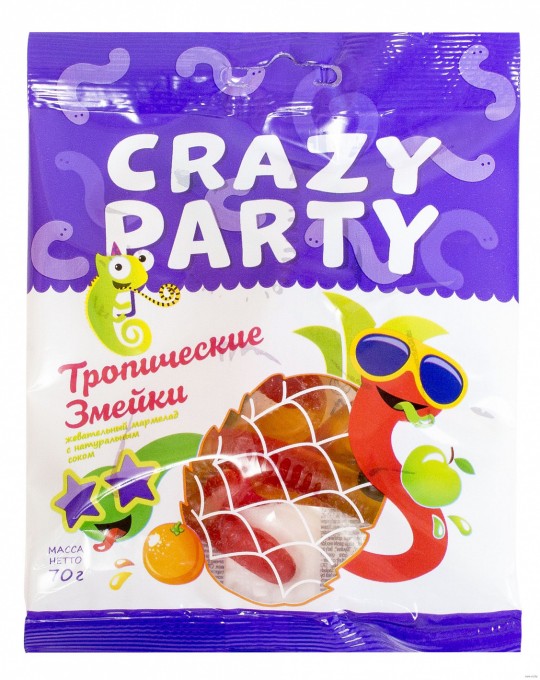 Мармелад Crazy Party Тропические змейки 70г купить по цене от 350 ₸₸ с бесплатной доставкой | Instashop