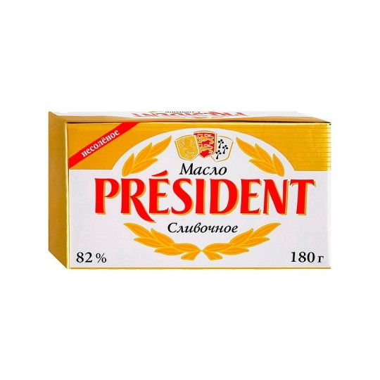 Масло сливочное President 82% несоленое 180 г купить по цене от 1 059 ₸₸ с бесплатной доставкой | Instashop