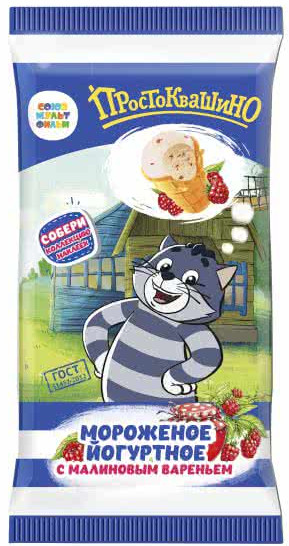 Купить Мороженое Простоквашино йогуртное с малиновым вареньем в вафельном стаканчике 80 г