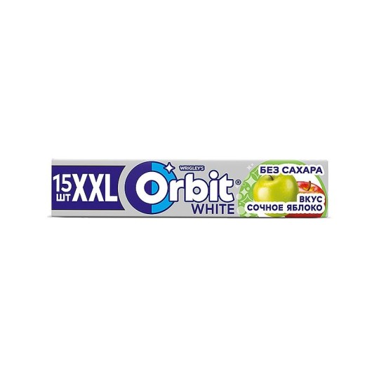 Жевательная резинка XXL размера "Orbit® Белоснежный Сочное яблоко" без сахара способствует поддержанию здоровья зубов: удаляет остатки пищи, способствует уменьшению зубного налета, нейтрализует вредные кислоты