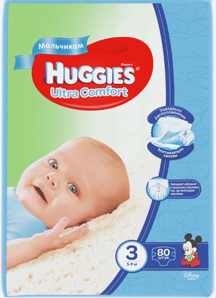 Подгузники Huggies Ultra Comfort созданы специально для мальчиков и специально для девочек. - 5-9 кг 80 шт для мальчиков; - анатомическая форма подгузников и изогнутые резиночки идеально прилегают к ножкам ребенка и исключают натирание; - широкий эластичный поясок осуществляет дополнительную защиту от протекания; - закругленные застежки надежно фиксируют подгузник не ограничивая свободу движений малыша; - специальный дышащий материал подгузника пропускает воздух и позволяет коже "дышать": вы можете забыть о покраснениях попки и опрелостях; - уникально расположенные впитывающие каналы быстро распределяют жидкость для уменьшения набухания и провисания подгузника там где необходимо мальчикам - ближе к животику; - яркие c эксклюзивным дизайном от Disney подчеркнут индивидуальность маленьких модников.