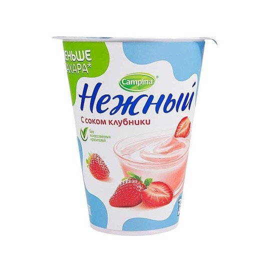 Купить Продукт йогуртный "Нежный" Campina с соком клубники 1,2%, 320 гр.