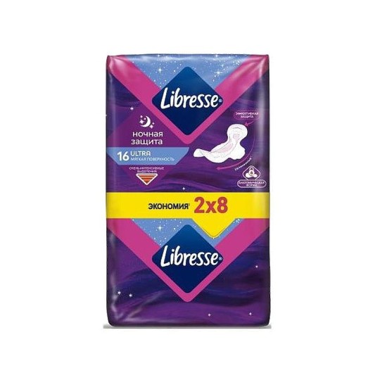 Прокладки гигиенические LIBRESSE Ultra ночные мягкая поверхность 16 шт купить по цене от 1 335 ₸₸ с бесплатной доставкой | Instashop