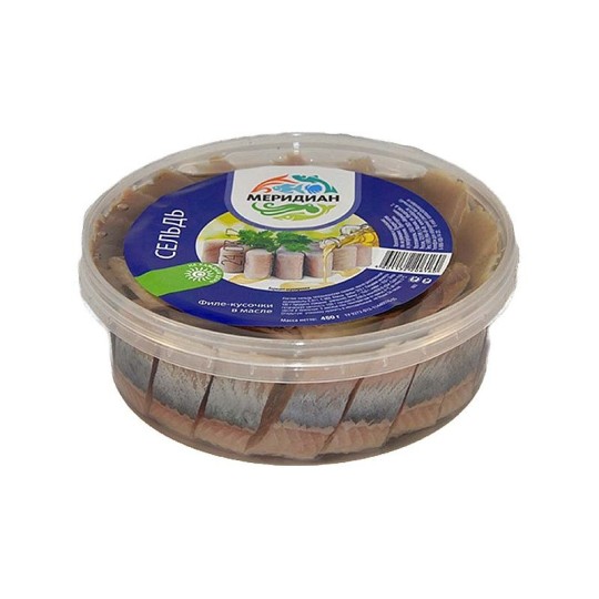 Сельдь Меридиан филе-кусочки в масле 480г купить по цене от 1 859 ₸₸ с бесплатной доставкой | Instashop