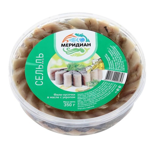 Сельдь Меридиан филе-кусочки в масле с укропом 350гр.
