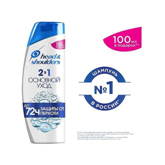 Head & Shoulders против перхоти 2 в 1 Шампунь и Бальзам-ополаскиватель обеспечивает защиту от перхоти до 72 часов*. Его усовершенствованная формула протестирована дерматологами, pH сбалансирована и усилена антиоксидантами для бережного ухода за волосами и кожей головы. Шампунь «Основной уход» очищает волосы, увлажняя и даря вам ощущение свежести. Head & Shoulders — бренд шампуней № 1 в России**, который также заботится о планете: флакон пригоден для переработки (за исключением колпачка и этикетки). • До 72 часов защиты от перхоти (видимой перхоти при регулярном применении) • Обеспечивает до 100% свободы от перхоти (при регулярном применении) • Дерматологически протестированная, pH-сбалансированная формула с антиоксидантами для мягкого ухода за кожей головы и волосами • Очищает волосы, увлажняя и даря вам ощущение свежести • Для наилучшего результата используйте в сочетании с бальзамом-ополаскивателем Head & Shoulders, который глубоко увлажняет волосы и кожу головы • Бренд шампуней № 1 в России (расчет P&G на основании годовых внешних продаж в категории «шампуни») • С заботой о планете: Флакон пригоден для переработки (за исключением колпачка и этикетки) *видимой перхоти при регулярном применении ** расчет P&G на основании годовых внешних продаж в категории «шампуни»