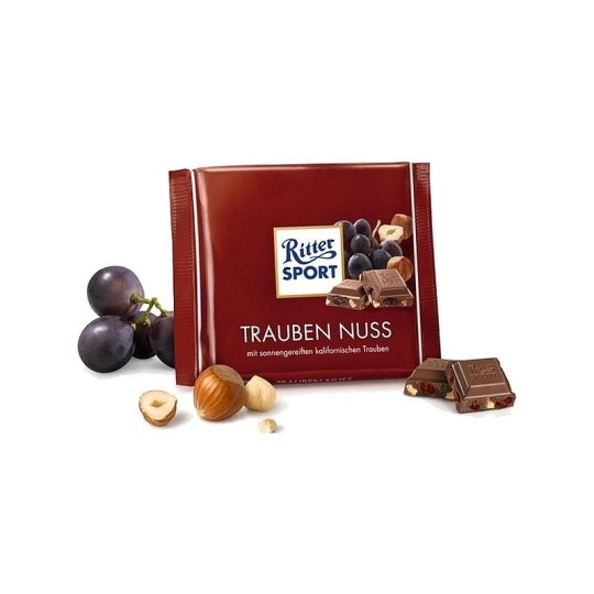 Шоколад Ritter Sport молочный с цельным обжаренным лесным орехом и изюмом, 100г