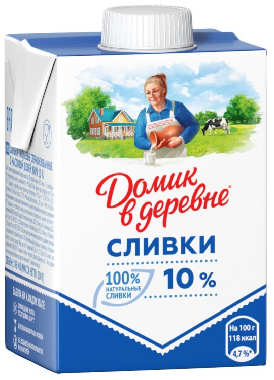 Сливки «Домик в деревне» - нежные, вкусные, приготовленные из свежего молока. «Домик в деревне» - все, что мы узнали о натуральности, мы узнали от бабушек. ●Сливки из 100% натурального молока. Без добавления консервантов и красителей. ●Идеально для кофе и чая Домик в Деревне – это 100% натуральные молочные продукты, приготовленные по традиционным рецептам. Как и бабушки, мы берем молоко от коров, которых кормили сочной травой, фильтруем его сразу после дойки и охлаждаем до 4-х градусов. В наших продуктах нет добавленных консервантов и красителей. «Домик в деревне» - все, что мы узнали о натуральности, мы узнали от бабушек.