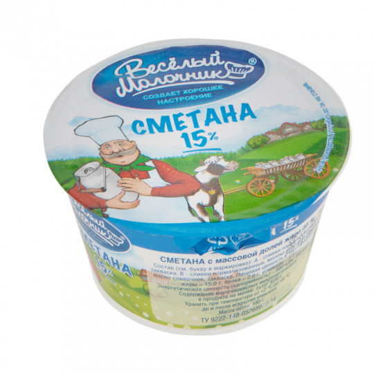 Сметана Веселый молочник 15% 180Г купить по цене от ₸ с бесплатной доставкой | Instashop