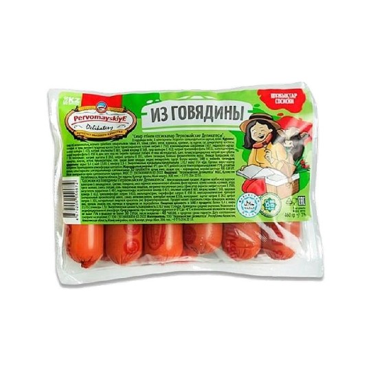 СОСИСКИ ПЕРВОМАЙСКИЕ ДЕЛИКАТЕСЫ ИЗ ГОВЯДИНЫ 460 Г В/УПАК. купить по цене от 1 609 ₸₸ с бесплатной доставкой | Instashop