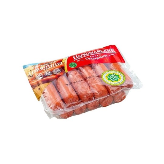 Купить СОСИСКИ ПЕРВОМАЙСКИЕ ДЕЛИКАТЕСЫ МУСУЛЬМАНСКИЕ 480 Г В/УПАК.