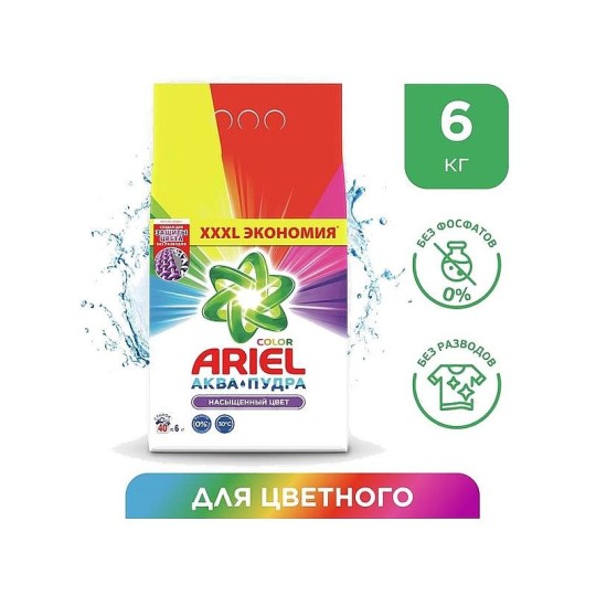 Стиральный порошок Ariel Автомат Color 40 стирок 6 кг. купить по цене от 6 910 ₸₸ с бесплатной доставкой | Instashop