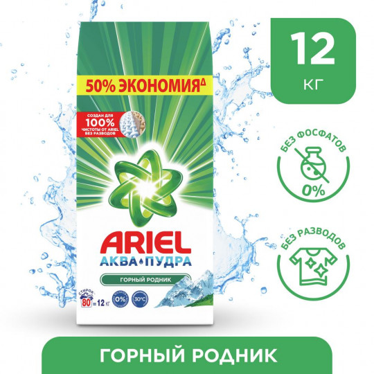 Стиральный порошок Ariel Автомат Горный родник 80 стирок 12 кг. купить по цене от ₸ с бесплатной доставкой | Instashop