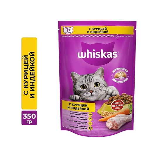 Сухой корм WHISKAS® для кошек «Подушечки с паштетом. Ассорти с курицей и индейкой», 350г купить по цене от 1 260 ₸₸ с бесплатной доставкой | Instashop