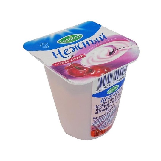 Йогурт Нежный с соком вишни от Campina – это полезный молочный продукт, снискавший доверие и любовь у многих российских потребителей. Йогурт не только приятный на вкус, но полезный и богатый витаминами. Йогурт производится из молока, которое богато протеином, кальцием. Микроорганизмы, содержащиеся в нем, попадая в желудочно-кишечный тракт, помогают переваривать пищу, что может способствовать похудению. Йогурт питает организм энергией. Состав: нормализованное молоко, сахар, фруктовый наполнитель (сок вишни, ароматизаторы идентичные натуральным, загуститель E1442, регулятор кислотности: лимонная кислота, краситель-кармин), восстановленное молоко, сухая молочная сыворотка, загустители: E1422 и пищевой желатин, закваска. Пищевая ценность: жир - 1,2 г, белки - 2,7 г, углеводы - 18 г, в т.ч. сахарозы - 12 г. Энергетическая ценность: 94 ккал. Масса нетто: 100г.
